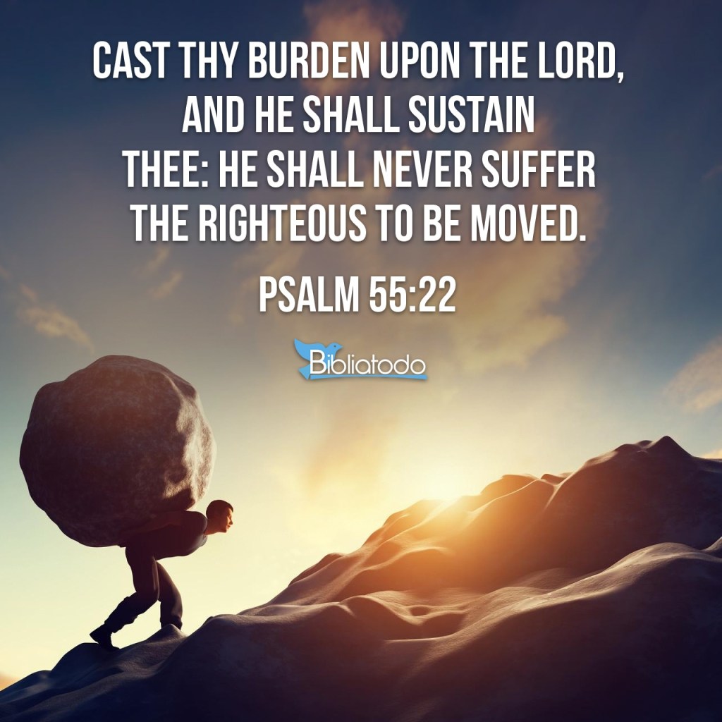 - Cast your burden on the Lord [release it] and He will sustain and uphold you; He will never allow the righteous to be shaken (slip, fall, fail). – Psalms 55:22 AMP