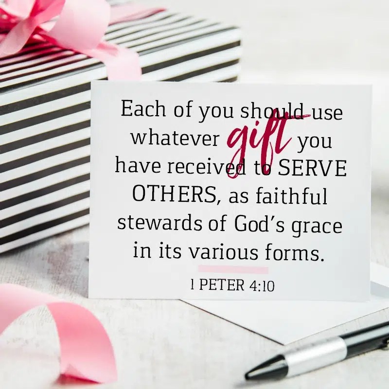 Lastly, 1 Corinthians 12:4, 7-11 (NLT) shares individual gifts God gives…