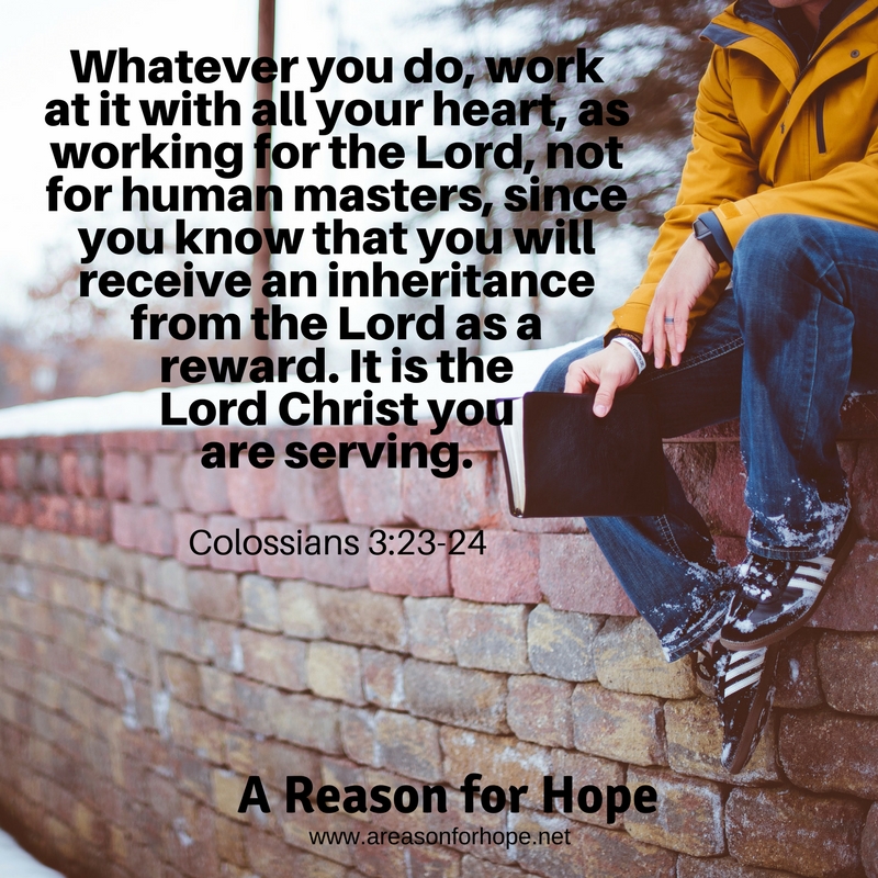 I believe when we do that we are working unto Lord, and as stated in today’s scripture, He rewards us for the good we do.