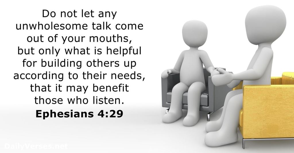 The Holy Spirit is encouraging us to talk with God, and others, rather than about or to them. Let’s make conversations for understanding be our focus. And remember, God wants us to be QUICK to listen to Him, SLOW to speak to ‘them’, and SLOW to get angry if they don’t understand.