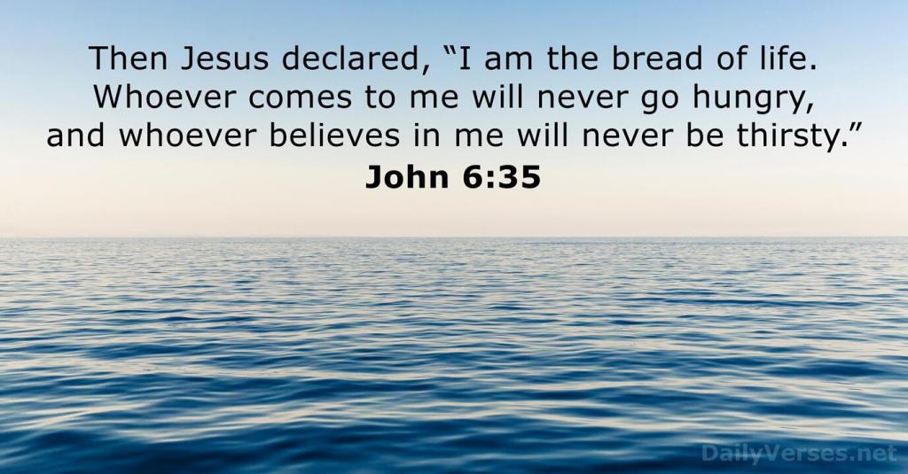 [35] …“I am the bread of life. Whoever comes to me will never go hungry, and whoever believes in me will never be thirsty.